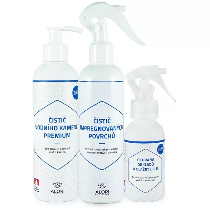 Alori balíček nano ochrana obkladů a dlažby je speciálně vyvinut pro ochranu sklokeramiky, glazované keramiky, smaltu, mramoru i porcelánu proti vodě, nečistotám a vodnímu kameni. Obsažené nano částice vytvoří na povrchu neviditelnou ultratenkou nano vrstvu s vynikající ochranou proti znečištění, usazování vápenatých a minerálních povlaků, vodní rzi i vodního kamene. Tato vrstva má díky efektu lotosového květu samočisticí účinek a zároveň znemožňuje život bakteriím, plísním, řasám a vytváří tak hygienický povrch.   Balíček obsahuje: Čistič vodního kamene díl A: příprava povrchu pro aplikaci nano ochrany. Zbaví povrch vodního kamen, nečistot a perfektně jej odmastí. Obsah: 250 ml Nano ochrana obkladů a dlažby díl B: samotná nano ochrana. Aplikuje se na připravený povrch. Její aplikace je velmi jednoduchá a má dlouhotrvající účinek (při správné péči 1 rok a déle). Obsah 100ml Čistič impregnovaných povrchů díl C: speciálně vyvinutý přípravek pro následné čistění ochráněných povrchů. Zaručuje, že se nano vrstva čištěním nepoškodí a vydrží minimálně 12 měsíců. Obsah 250ml Proč koupit: Až o 50% vyšší účinnost než běžné čisticí prostředky samočisticí efekt dlouhotrvající ochrana až 12 měsíců Vytváří hygienický povrch Snadnější a kratší následný úklid Bez obsahu parabenů, fosfátů a silikonů 100% biologicky odbouratelný Zaujal vás tento produkt a chcete se na něco zeptat? Ptejte se na našem chatu rádi vám odpovíme.