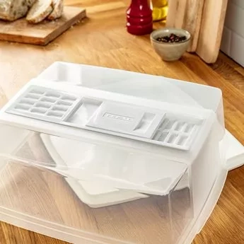 Dóza na sýr Tefal® proti zápachu (rozměry: 32 x 27 x 11 cm). Pro optimální uchování chuti sýrů: zabraňuje vysychání a vzniku plísní.