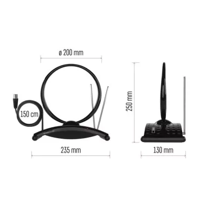 Svérázná pokojová anténa EM-209 uzpůsobená k bezchybnému příjmu radiového i digitálního televizního vysílání (DVB-T i DVB-T2), dokonce ve Full HD. Díky vestavěnému nízkošumovému zesilovači dosahuje vysokého zisku, který nijak nenaruší k tomuto účelu nežádoucí mobilní data (o to se postará LTE filtr). Jedná se o všesměrovou anténu (s přijímacím úhlem 360°) umožňující horizontální i vertikální polarizaci. Napájí se pomocí přiloženého síťového adaptéru.