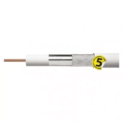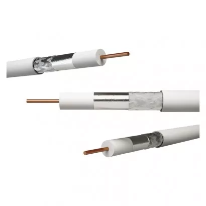 Koaxiální kabel typu KH21D nejvyšší kvality se středovým vodičem z čisté mědi BC, bílá barva, CLASS A. Kabel je určen pro všechny náročné aplikace přenosů CCTV, TV a SAT signálů. Protože má kabel velmi vysoký útlum stínění(= velmi nízké vyzařování), lze kabelem vést signál o velmi vysoké úrovni, z tohoto důvodu lze tímto kabelem přenášet signály na velké vzdálenosti. Díky kvalitnímu stínění není problém se souběhem více kabelů na velké vzdálenosti.