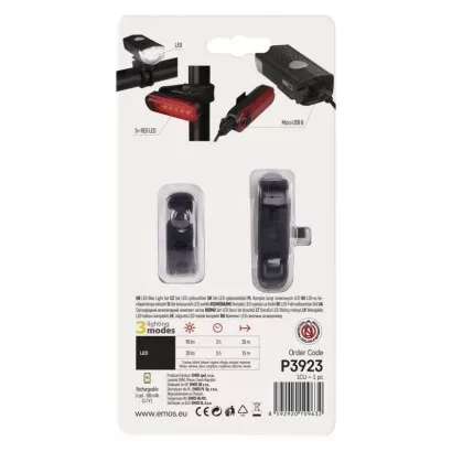 EMOS LED přední + zadní nabíjecí svítilna na kolo P3923, 90 lm