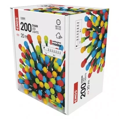 EMOS LED vánoční cherry řetěz – kuličky, 20 m, venkovní i vnitřní, multicolor, programy