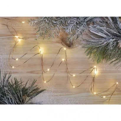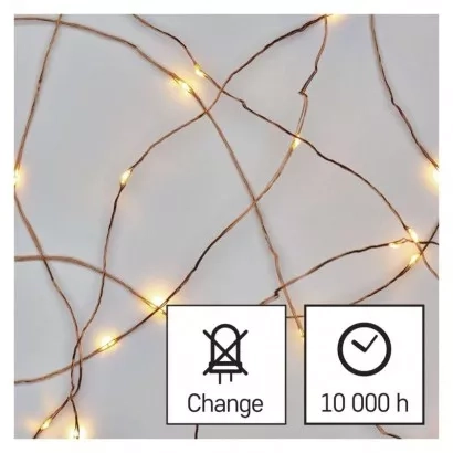EMOS LED vánoční nano řetěz měděný, 0,9 m, 2x AA, vnitřní, teplá bílá, časovač