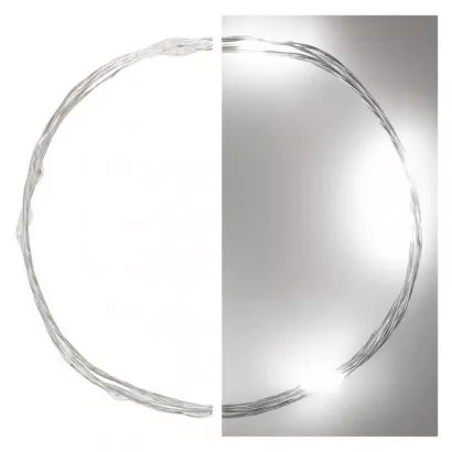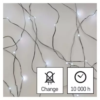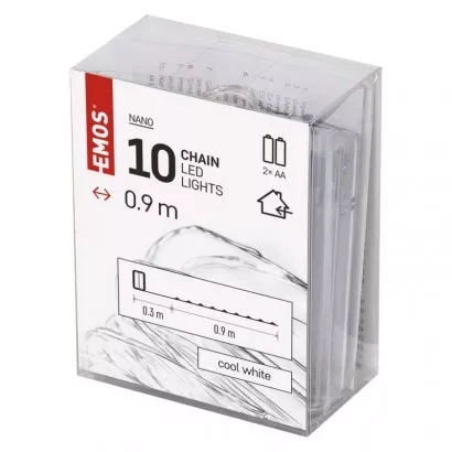 EMOS LED vánoční nano řetěz stříbrný, 0,9 m, 2x AA, vnitřní, studená bílá, časovač