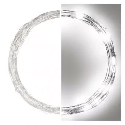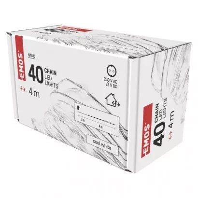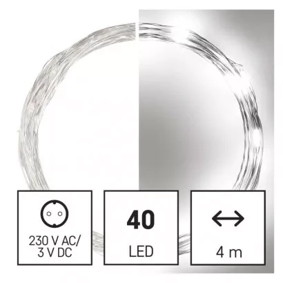 EMOS LED vánoční nano řetěz stříbrný, 4 m, venkovní i vnitřní, studená bílá, časovač