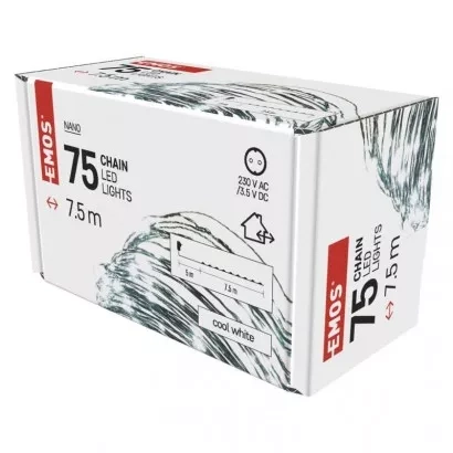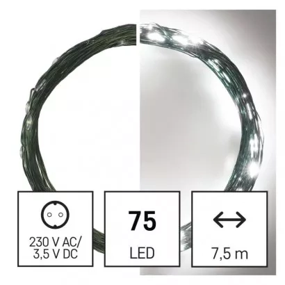 EMOS LED vánoční nano řetěz zelený, 7,5 m, venkovní i vnitřní, studená bílá, časovač