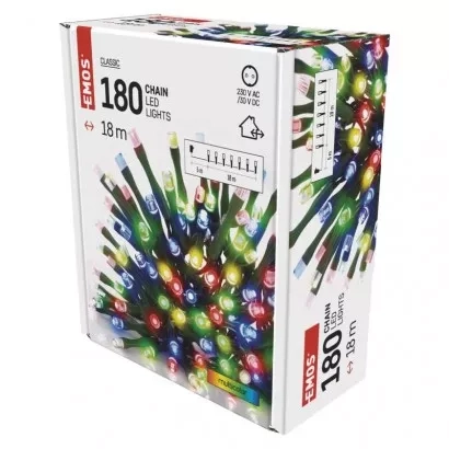EMOS LED vánoční řetěz, 18 m, venkovní i vnitřní, multicolor, časovač