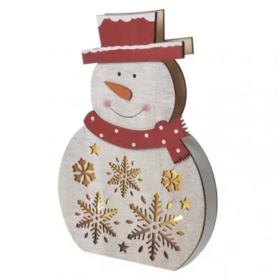 EMOS LED vánoční sněhulák dřevěný, 30 cm, 2x AA, vnitřní, teplá bílá, časovač