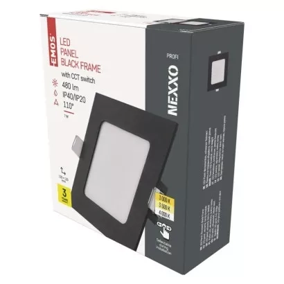 EMOS LED vestavné svítidlo NEXXO, čtvercové, černé, 7W, se změnou CCT