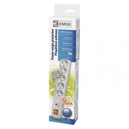 EMOS Přepěťová ochrana – 5 zásuvek, 3m, šedá