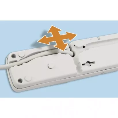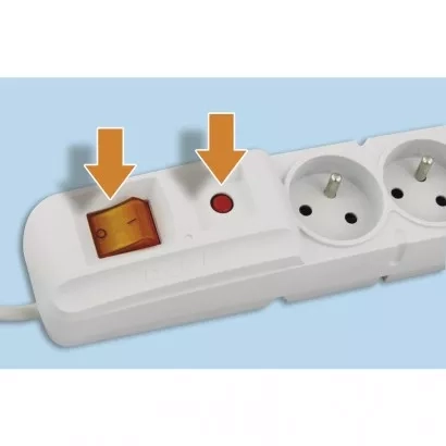 Podsvícený síťový vypínač, automatická pojistka s časovým zpožděním. 4 možné směry uspořádání síťového přívodu.