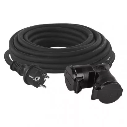 EMOS Venkovní prodlužovací kabel 10 m / 2 zásuvky / černý / guma / 230 V / 1,5 mm2