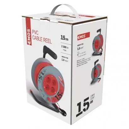 EMOS Prodlužovací kabel na bubnu 15 m / 4 zásuvky / červený / PVC / 230 V / 1 mm2