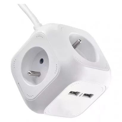Prodlužovací přívod ve tvaru kostky se 4 zásuvky (250 V~, 16 A, 3 680W) a 2mi USB porty (max.2,1 A), délkou připojovacího kabelu 1,9 m nabízí ideální funkční a elegantní řešení do Vaší domácnosti, kancelářských prostor.
