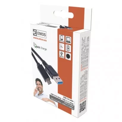 EMOS Rychlonabíjecí a datový kabel USB-A 3.0 / USB-C 3.1, Quick Charge, 1 m, černý