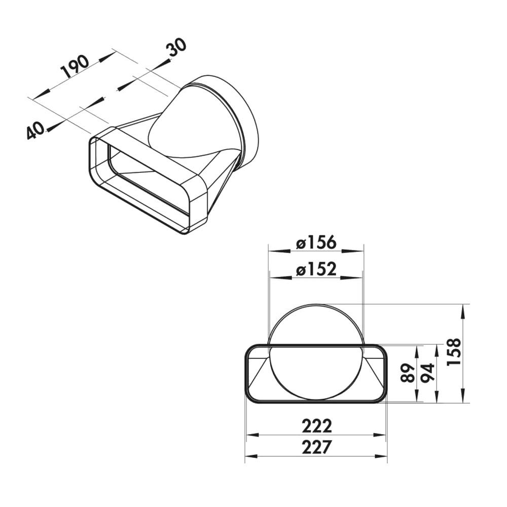 F-EST 150 - přechod čtyřhran-kruh horizontální 90°