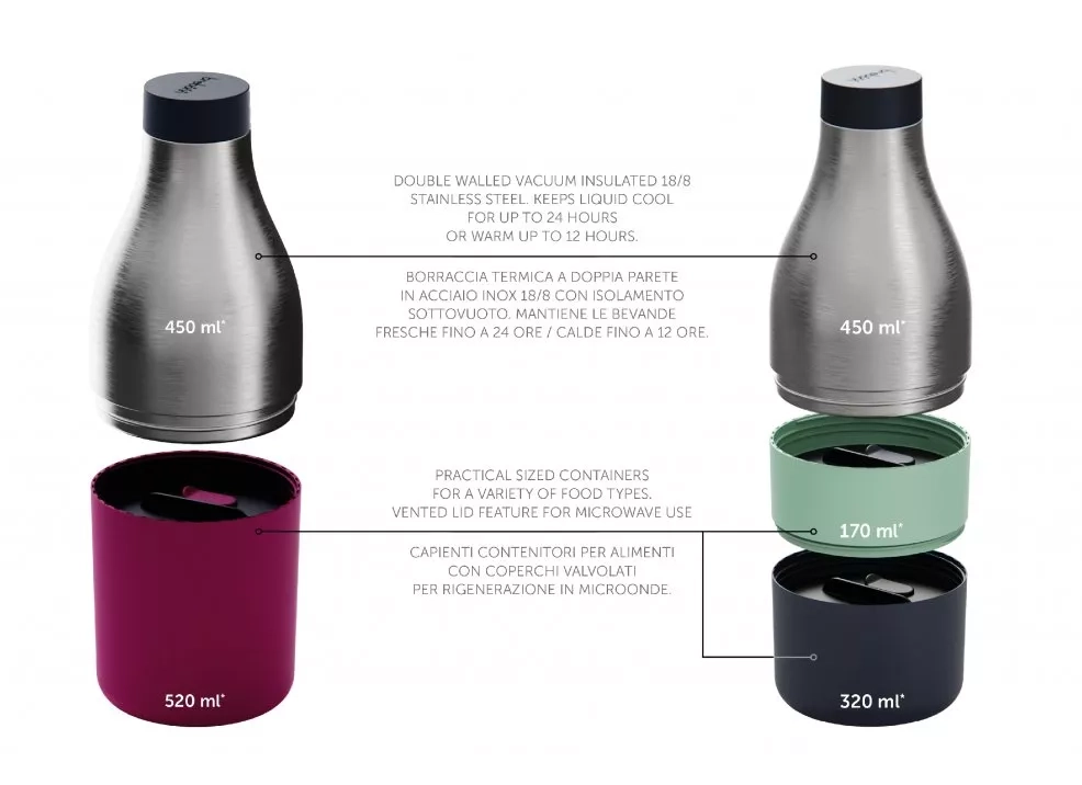 Snídaně – svačina – oběd? Food&Hydrate je praktický kdekoli - studené nebo horké, vždy zdravé, odolné a praktické v rychle se měnícím světě. To je termobox 2v1 od italské společnosti Trebonn. Jídlo a pití v jednom kompaktním a praktickém termoboxu s moderním designem.