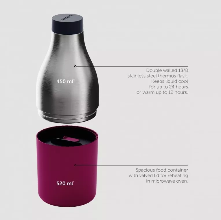 Food&Hydrate je praktický pomocník kamkoliv - na cesty, do práce či dětem do školy. Díky rozměrům ušetříte místo a o jídlo i pití máte postaráno.