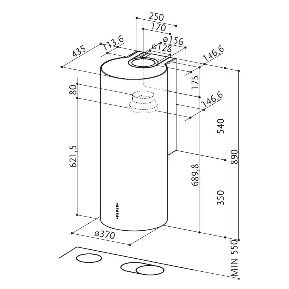 Čistě bílý odsavač par CYLINDRA vyniká jednoduchým designem, elegantní válcový tvar digestoře dá punc vaší kuchyni, ať už je klasická nebo v moderním duchu.