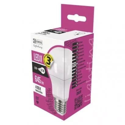 EMOS LED žárovka Classic A60 / E27 / 7,3 W (50 W) / 645 lm / neutrální bílá