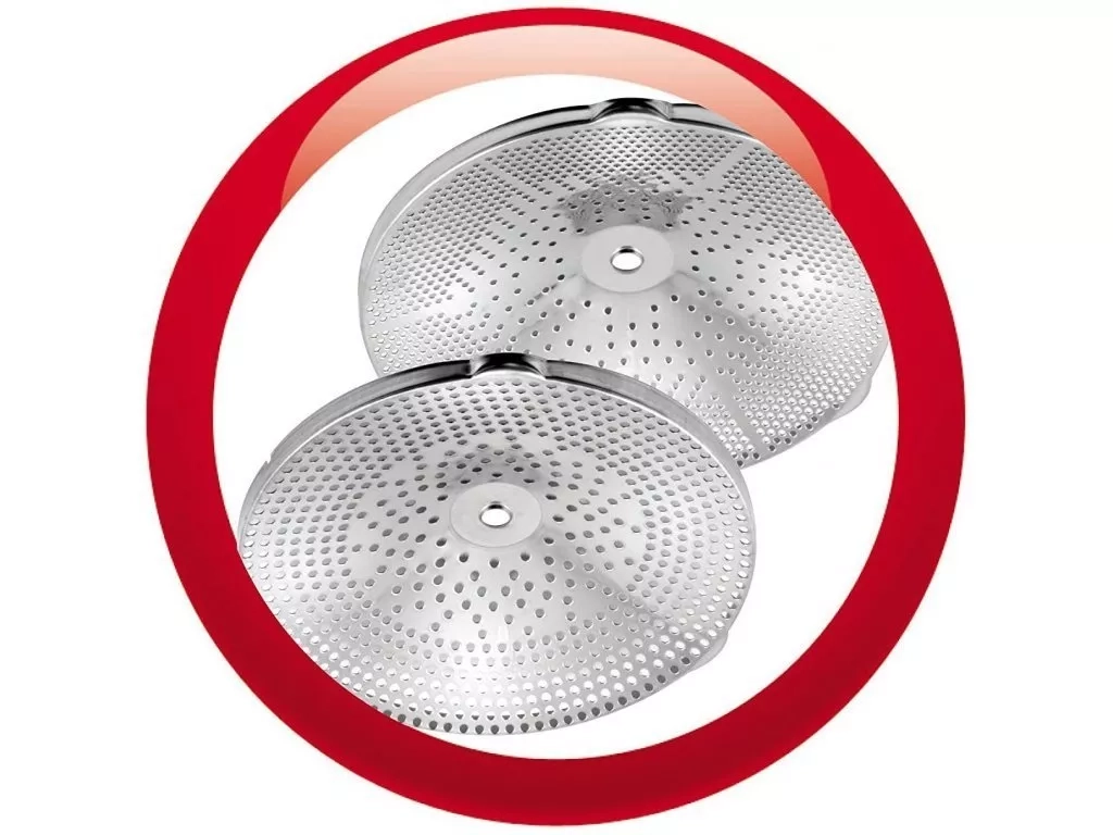 Pasírovač značky Moulinex je perfektním pomocníkem například při příprav dětských jídel. Je vyroben z kvalitní a odolné nerezové oceli. Disponuje dvěmi čepeli, které disponují průměrem 24 cm. Díky dvěma sítovým kotoučům je výborným pomocníkem pro přípravu pyré, polévek a kompotů. Ruční systém s ergonomickou rukojetí a podpěrnými nohami pro usnadnění činnosti.