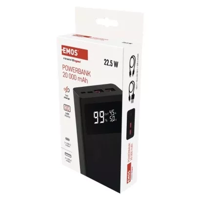 Powerbanka EMOS BetaQ 20, 20 000 mAh, 22,5 W, černá