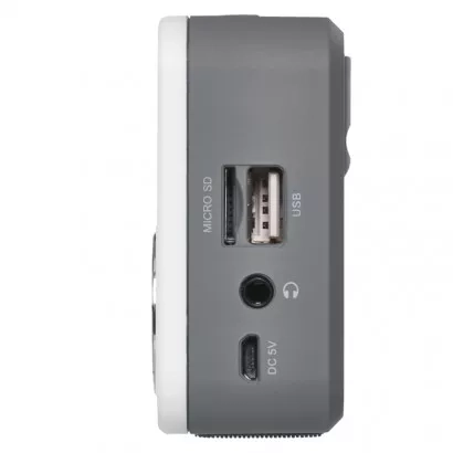 Přenosný multimediální přehrávač s FM rádiem. FM rádio s digitálním tunerem pro přesné naladění. Podpora přehrávání mp3 souborů z USB Flash paměti, microSD karty.