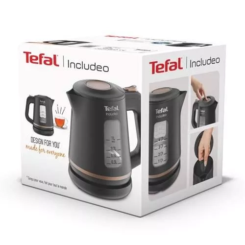 Řada TEFAL Includeo byla navržena tak, aby splnila ty nejnáročnější požadavky uživatelů. Tato elektrická rychlovarná konvice s ergonomickým a komfortním designem je vybavena snadno ovladatelnými funkcemi včetně zjednodušeného otevírání pomocí velkého tlačítka, osvětleného tlačítka pro zapnutí/vypnutí, dvou snadno čitelných průhledů na hladinu vody s indikátory - litry nebo šálky - a 360° základnou pro snadné usazení konvice. Ideální pro příjemné a snadné denní použití.