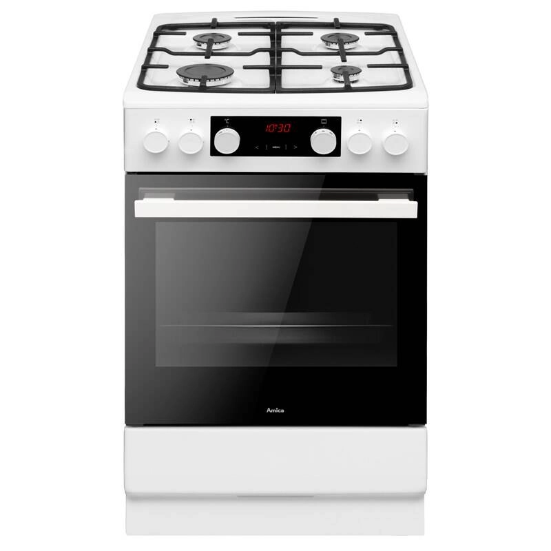 Kombinovaný sporák Amica SPS 111 STW v bílé barvě nabízí šířku 50 cm, plynovou varnou desku se 4 hořáky, elektrickou troubu o objemu 65 l, energetickou třídu A a spotřebu 0,99 kWh/cyklus při statickém pečení nebo 0,78 kWh/cyklus s horkým vzduchem. Trouba disponuje 11 funkcemi včetně grilu, grilu s ventilátorem, rozmrazování, pravého horkého vzduchu a ECO horkého vzduchu. O pohodlné pečení se stará Soft Close tlumené dovírání dvířek, teleskopický výsuv, rovnoměrné pečení, EasyClean smalt a parní čištění pro snazší údržbu. Praktickou výbavu doplňuje senzorový LED displej s kontrolou času pečení, automatické zapalování v knoflících, bezpečnostní pojistka hořáků, litinové rošty, studená čelní stěna se 3 skly a zásuvka na kolečkových výsuvech.
