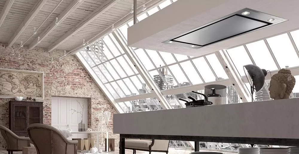 Digestoř je určena k plnému zapuštění do stropního podhledu a zajistí maximální volný prostor nad pracovní plochou. Při externím umístění motoru se navíc snižuje výška sádrokartonového podhledu a potrubí je možné napojit jak z boční části korpusu, tak shora.