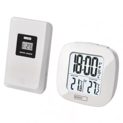EMOS Digitální teploměr s vlhkoměrem, bezdrátové čidlo, budík, datum E0558W