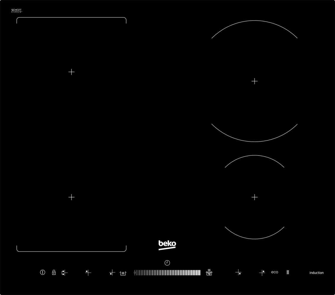 Indukční varná deska Beko HII 64500 FHT s Eco úspornou funkcí, která snižuje spotřebu energie při vaření. Funkce IndyFlex umožňuje dvě levé zóny spojit do jedné velké obdélníkové, například při použití objemnějšího nádobí. Má senzorové posuvné ovládání a 19 úrovní rozehřátí desky. Indukční technologie je nejefektivnějším způsobem vaření, protože zahřívá jen tu část nádobí, která je v kontaktu s varnou deskou. Jelikož se povrch varné desky nezahřívá, vylité tekutiny z vaření se nepřipálí a tím je údržba o mnoho snadnější. Dále možnost zamknutí desky při čištění a tím tak zamezení nechtěnému spuštění.