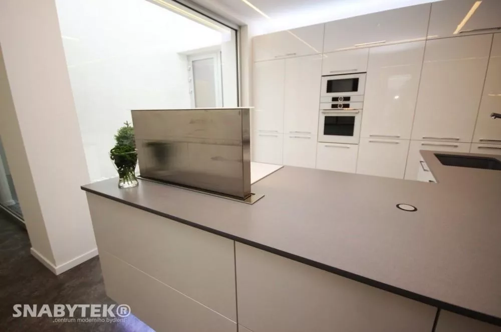 Je určena k instalaci přímo do pracovní desky za varnou plochu. Jakmile ji zapnete, vysune se z pracovní desky sací část a začne odsávat páry a pachy nejen z prostoru nad varnou deskou, ale rovnou z celé kuchyně.