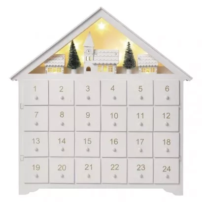 EMOS LED adventní kalendář dřevěný, 35x33 cm, 2x AA, vnitřní, teplá bílá, časovač