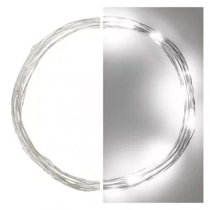 EMOS LED vánoční nano řetěz, 1,9 m, 2x AA, vnitřní, studená bílá, časovač