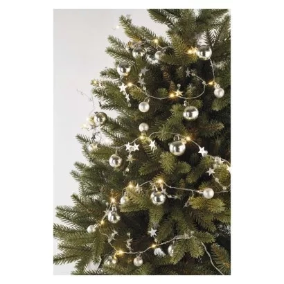 EMOS LED vánoční girlanda, stříbrné koule s hvězdami 1,9 m, 2x AA, vnitřní, teplá bílá, časovač