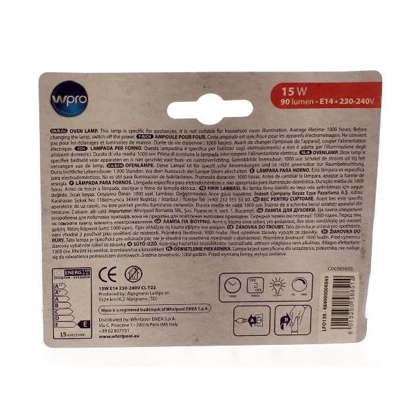 Žárovka do trouby E14 15W 300°C  484000008843 / C00385605 náhrada C00863216
